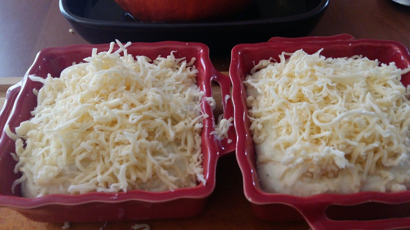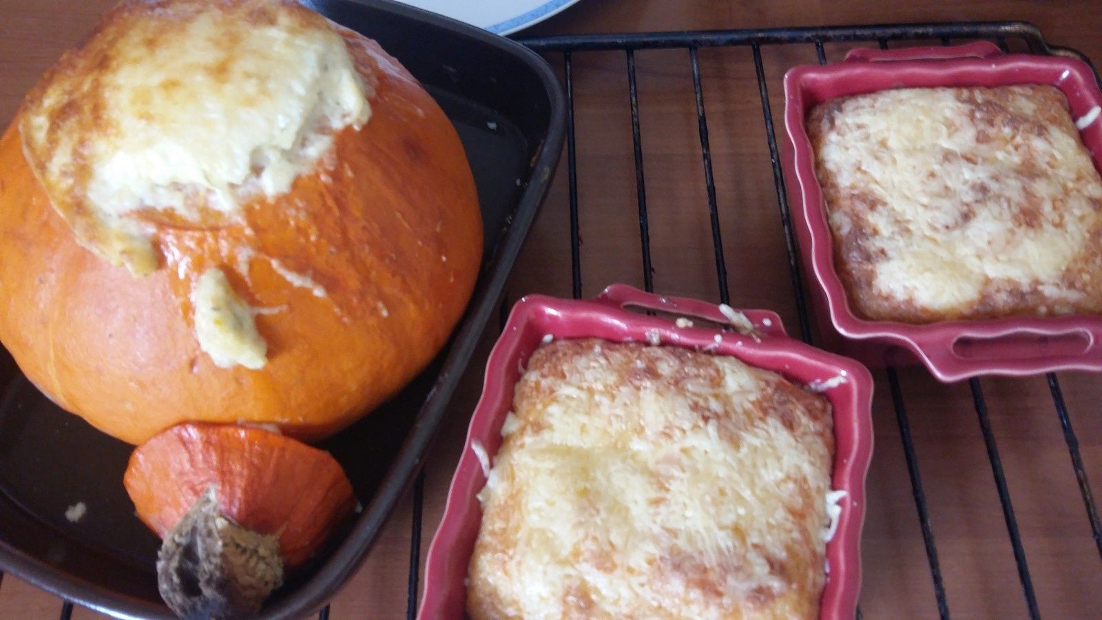J'avais beaucoup de farce, j'ai donc fait deux petits gratins en plus sans potimarron, cela tombait très bien car mon mari n'aime pas trop le Potimarron.